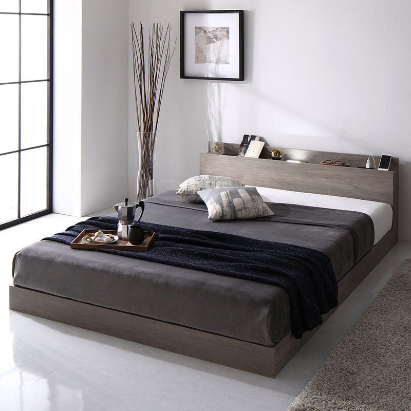 充電コンセントと照明付きの棚がついているため、枕元に置きたいものをまとめられるのが魅力的ですね。