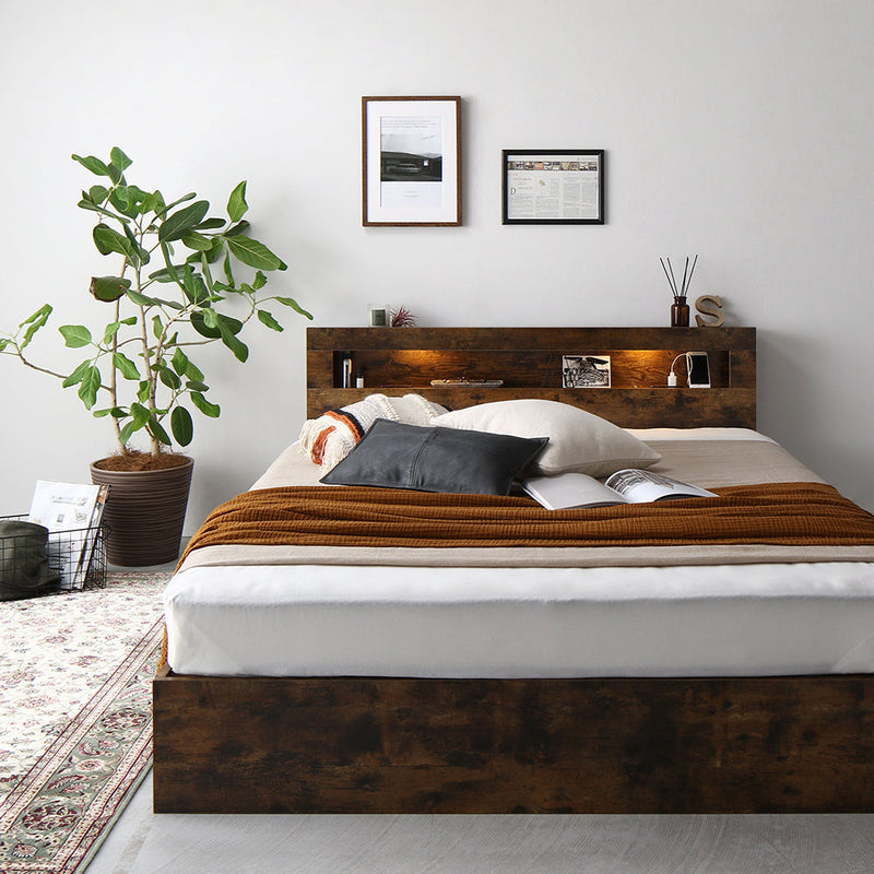 Aperty(アペルティ)照明&棚付きローベッドは、ホテルのベッドのような高級感があるデザインが特徴のアイテムです。