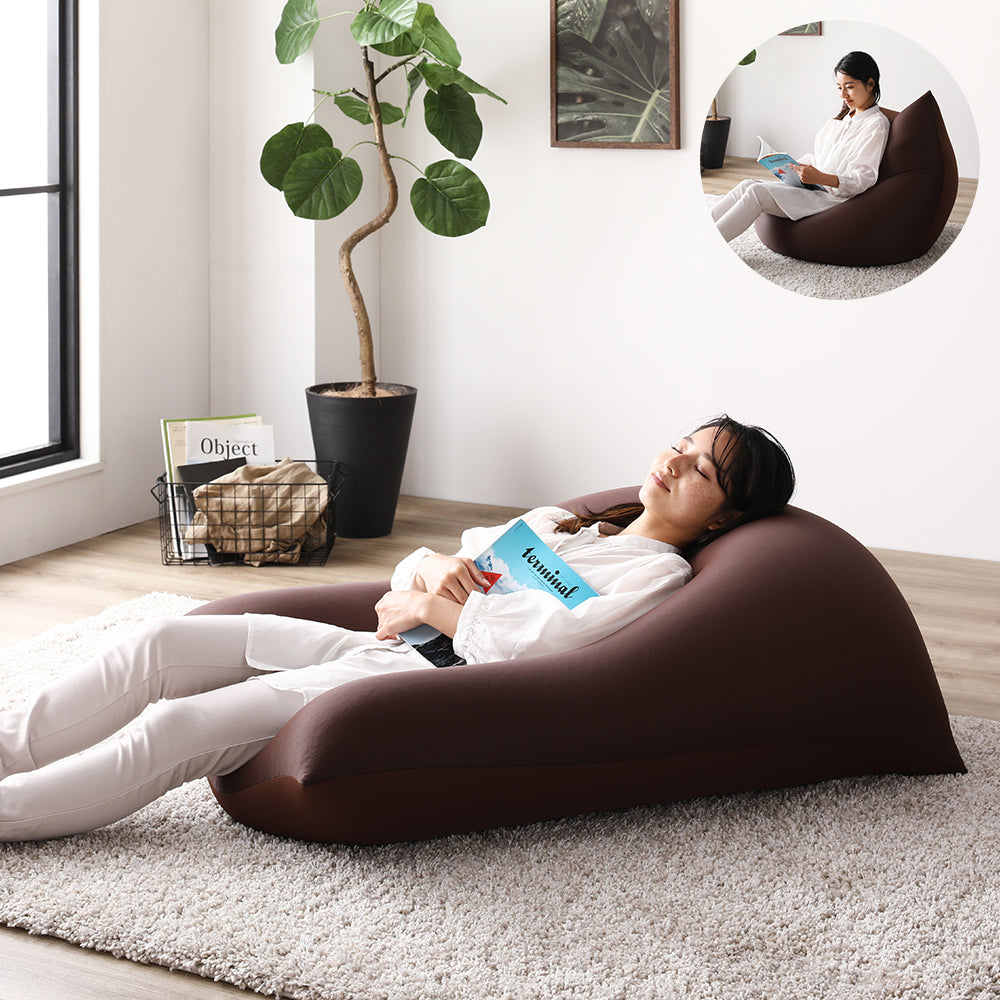このビーズクッションは幅が104cmもあるので、仰向けでもうつ伏せでも、座っても快適にゆったりと過ごせます。