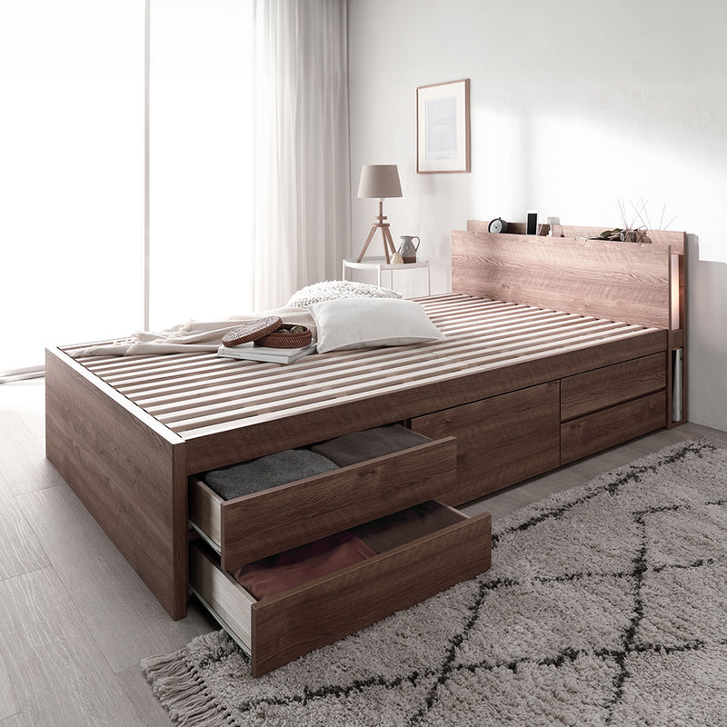 【RASIK】すのこタイプ引き出し5杯大容量ベッド