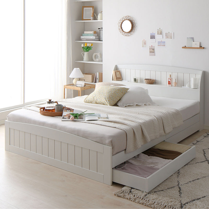 さらに、ヘッドボードの棚と、ベッド下用の2杯の引き出しが付いています。