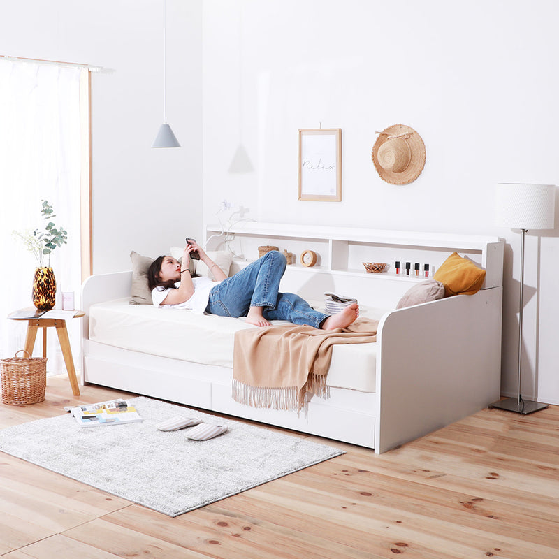 デイベッドには、棚や引き出しといった収納スペースが設けられているものが多くあります。