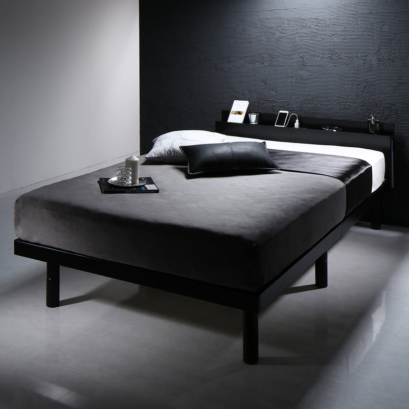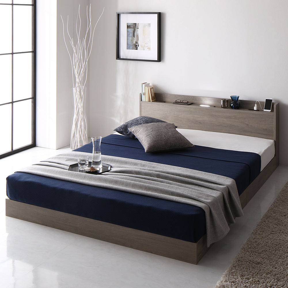 照明付きフロアベッドは、枕元に「棚」「照明」「コンセント」の3つが付いた、読書に最適なベッドです。